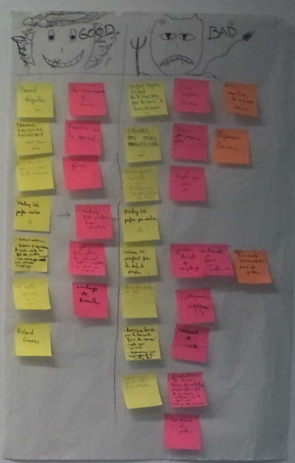 - Bon/mauvais : On place les post-its sur une feuille de paper-board à deux colonnes,